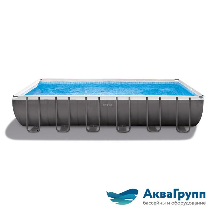 Сборный каркасный бассейн серии Intex Ultra Frame комплектации DELUXE с песочным фильтр-насосом, лестницей, тентом и подстилкой.