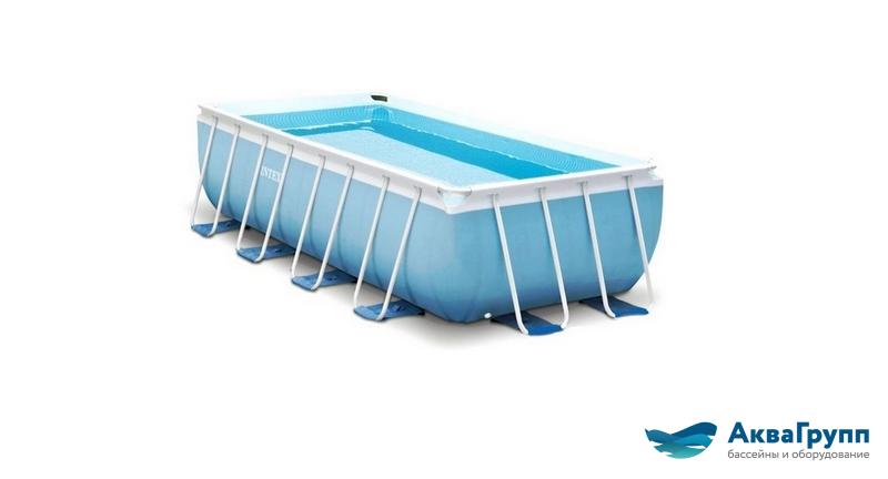 Сборный каркасный бассейн серии Intex Prism Frame прямоугольной формы с фильтр-насосом и лестницей.