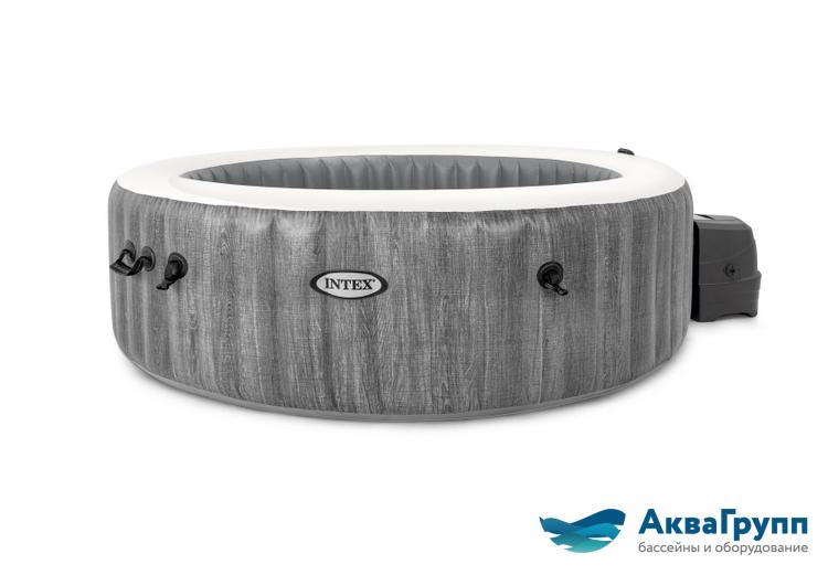 Надувная гидромассажная ванна Intex 28442, диаметр 216 см с тепловым насосом и водоподготовкой, удобная и стильная, идеально подходит для отдыха на территории дачного участка.