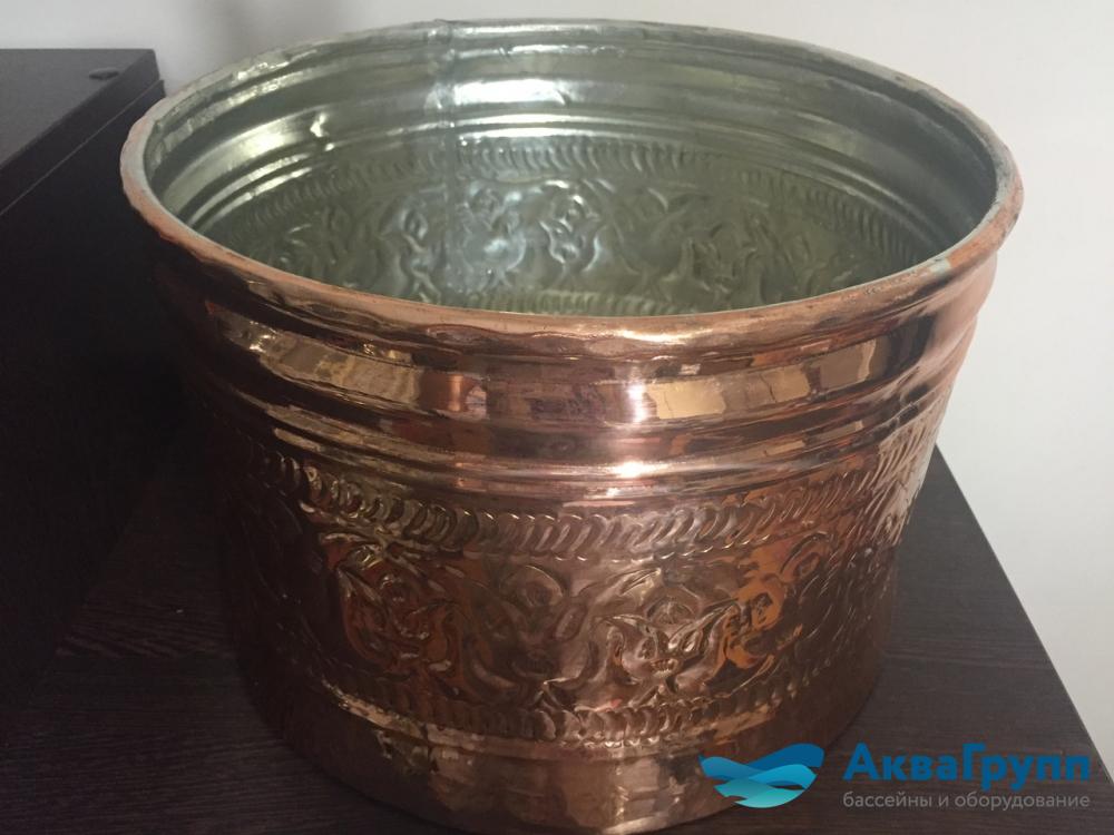 Медная емкость ЕМ-19 высота 23 см., диаметр 32 см. Изготовлено вручную из меди. По всей поверхности изделия выполнены цветочные узоры.