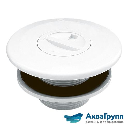 Стеновая форсунка для пленочного бассейна. 2” наружная резьба, внутренний диаметр 50 мм. Из белого ABS-пластика. Резьба на крышке 1 1/2”.