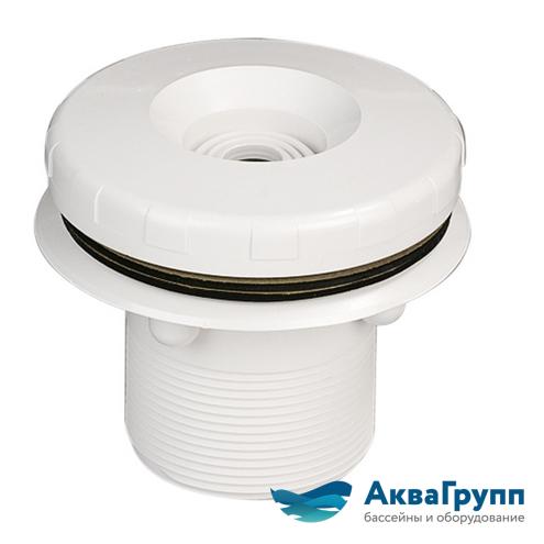 Донная форсунка для пленочного бассейна. Наружная резьба 2”, устанавливается на клей в трубу диаметром 50 мм. Изготовлена из белого ABS-пластика. С прокладками и самоназрезающимися винтами. Рекомендуется устанавливать с закладными элементами 15664 или 15665.