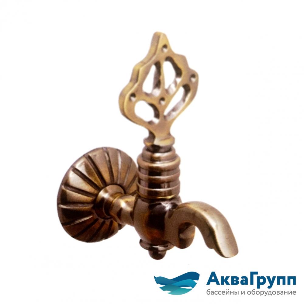 Кран латунный состаренный для хамама №010-А. Механизм открывания - шаровый.