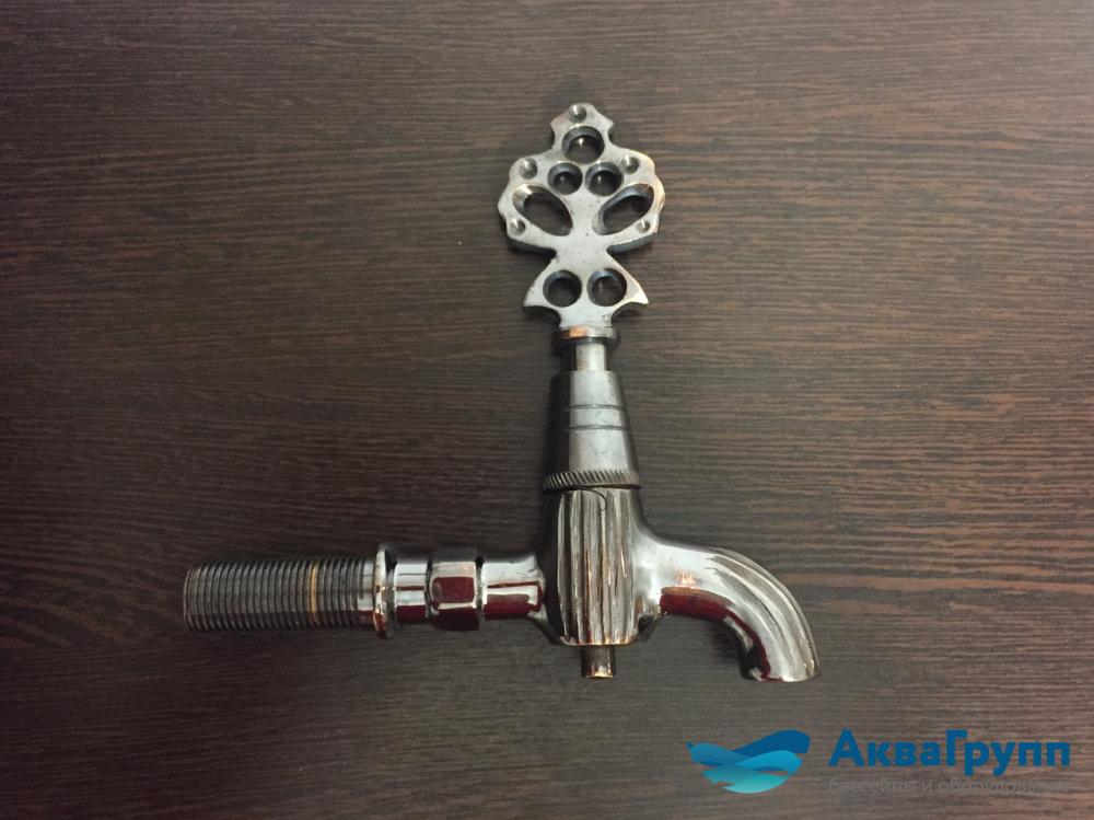 Кран медный черненый для турецкой бани. С резным вентелем, в традиционном османском стиле.