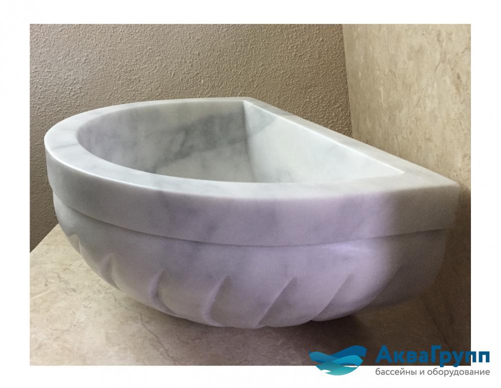 Курна для турецкой бани пристенная BTH-4 из цельного куска белого мрамора Афьон Беяз.