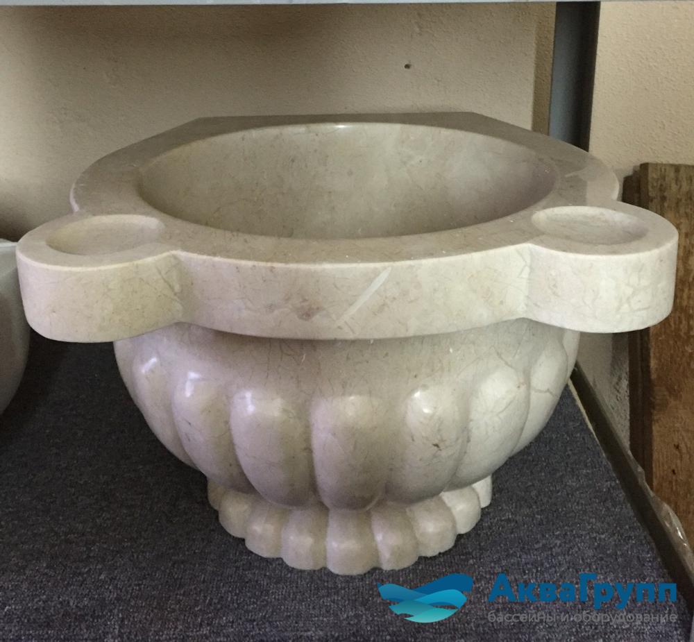 Белая курна из мрамора "Бурдур беж", пристенная, на ножке