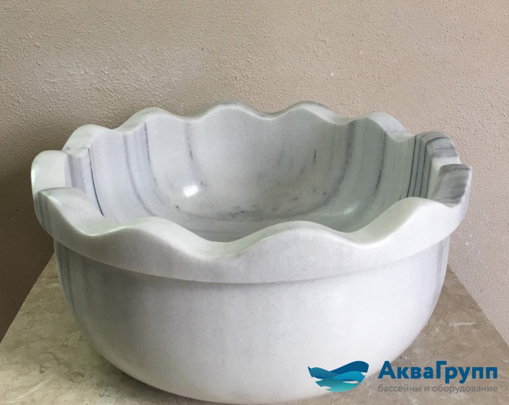 Курна круглая из белого мрамора с серыми полосами Мармара