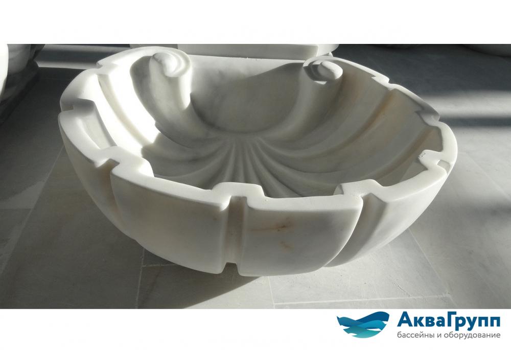 Курна выполнена из белого мрамора Афьон Беяз в виде раковины. Великолепная ручная работа по камню делает курну на вид легкой и прозрачной. Эта модель курны станет жемчужиной в Вашем хамаме.