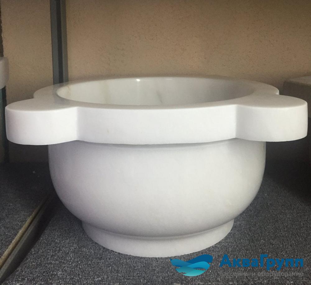 Изготовлена из цельного куска мрамора. В комплекте подставка из аналогичного мрамора. Выполнена в традиционном османском стиле.