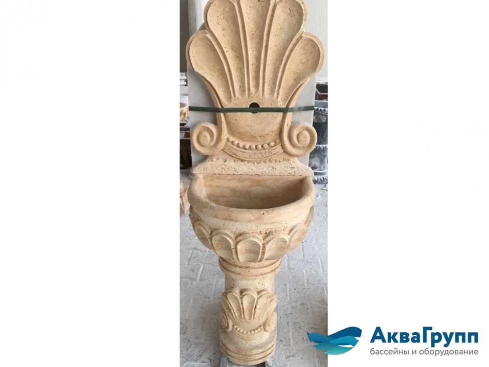 Курна на высокой резной подставке со стеновой панелью из Травертина Noce