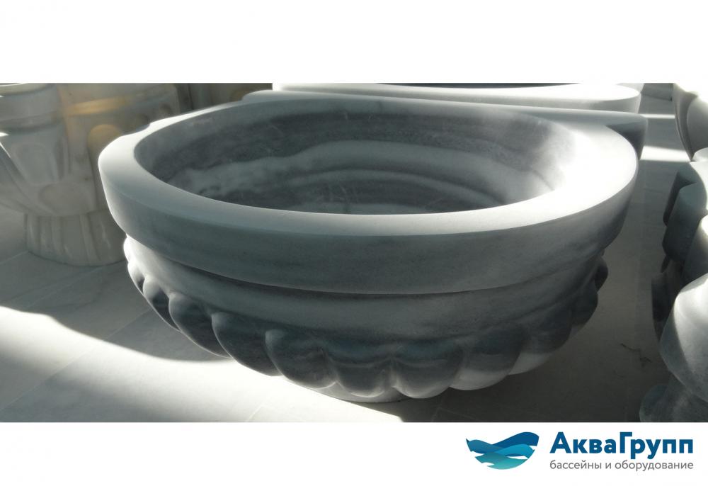 Курна мраморная КР-20 пристенная, овальная. Выполнена из бело-серого мрамора "Мармара". Красивые горизонтальные серые полосы создает впечатление слоистости изделия. Большая курна подходит для больших помещений.
