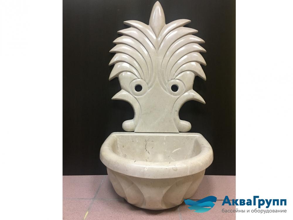 Курна пристенная из мрамора "Piadin Beige" бежевого цвета со стеновой панелью.