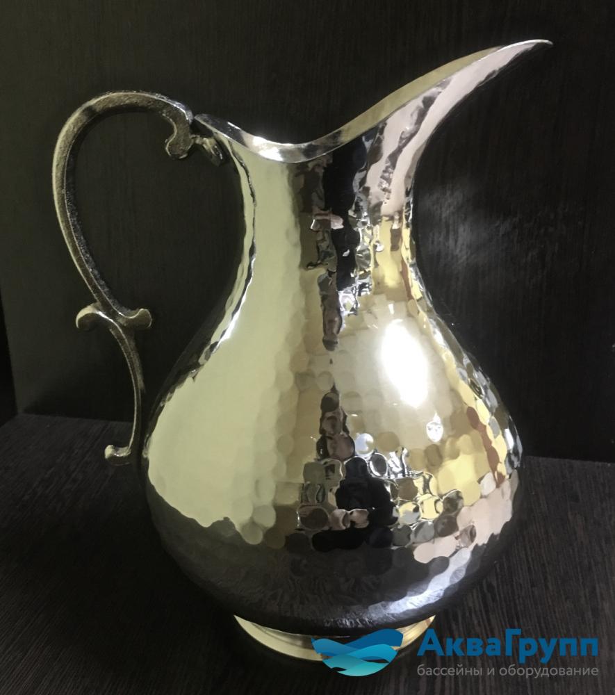 Кувшин для хамама серебристый с тиснением КМ-1