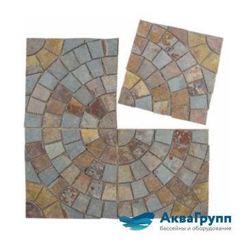 Мозаика из натурального камня. Сланец и Гранит. Камни разных цветов и размеров. Толщина камней от 15 до 35 мм. Основное использование для укладки тротуаров и пешеходных зон. Средний и высокий ценовой сегмент.
