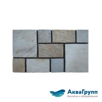 Мозаика из натурального камня. Сланец и Гранит. Камни разных цветов и размеров. Толщина камней от 15 до 35 мм. Основное использование для укладки тротуаров и пешеходных зон. Средний и высокий ценовой сегмент.