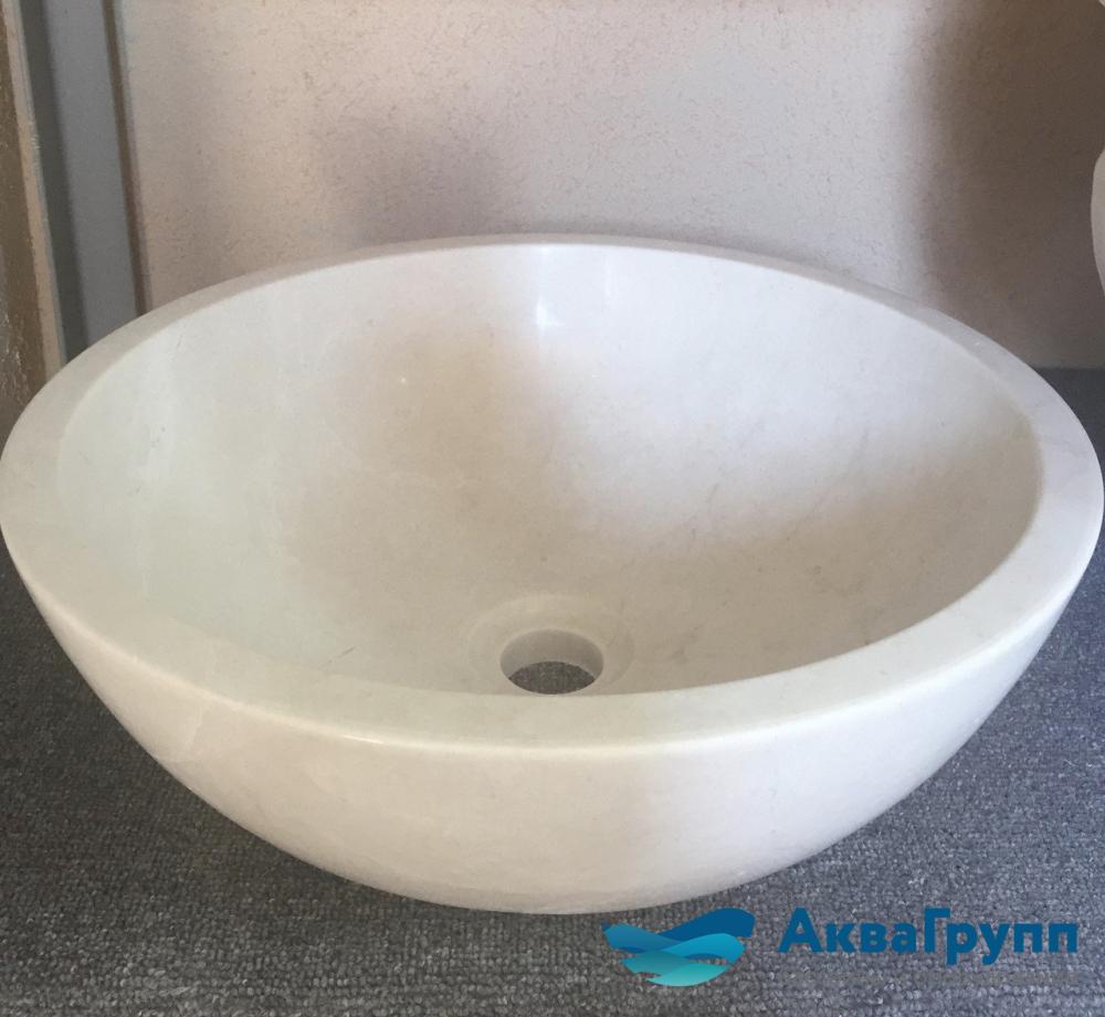Мраморная раковина КР-38 со сливным отверстием из бежевого мрамора Сиврихисар Беж.