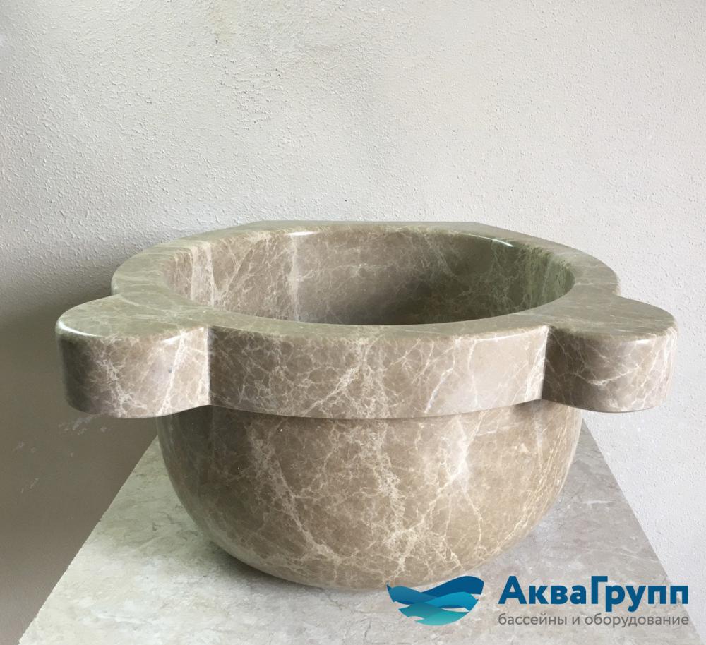 Пристенная курна круглой формы изготовлена из цельного мрамора "Imperador Light"