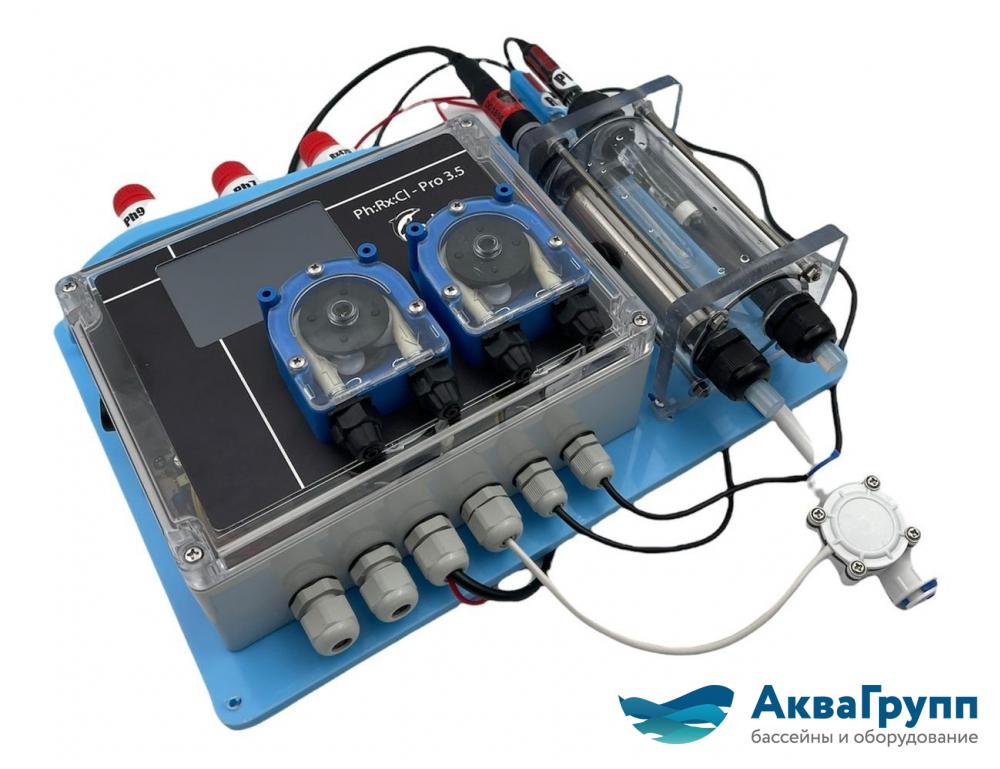 Пульт автоматического управления дозированием химических реагентов «Alchemist Ph, Rx, Cl 3.5 PRO» - представляет собой сложное электронное устройство. Пульт предназначен для дозирования химических реагентов CL и Ph – минус в систему водоподготовки плавательных бассейнов, а также для контроля и поддержания заданных значений концентрации CL и Ph в воде бассейна. Измерение текущего значения CL в системе водоподготовки бассейна и дозирование соответствующего хим. реагента производится по показаниям датчика CL (свободного хлора). Измерение текущего значения Ph в системе водоподготовки бассейна и дозирование соответствующего хим. реагента производится по показаниям датчика Ph.