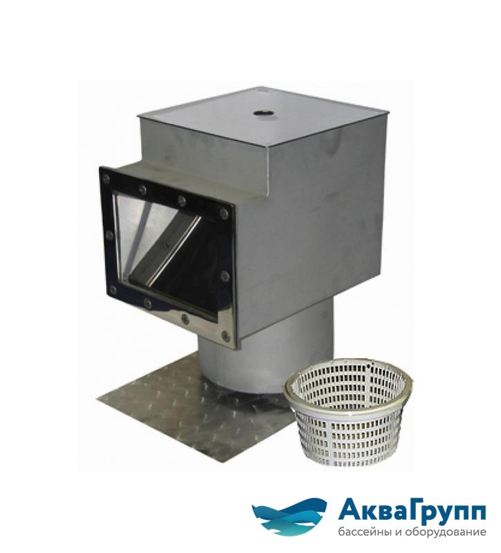 Скиммер “V-15л” Скиммер изготовлен из полированной нержавеющей стали AISI-304. Подключение: внутренняя резьба 2”. Рекомендуемый поток воды 5000-7500 л/ч.