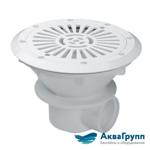 2" боковое соединение. Корпус и решетка из белого ABS-пластика, с самоклеящимися прокладками, фланцем и винтами.
