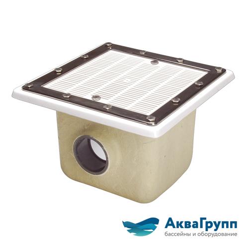 Слив донный, квадратный 512 х 512 мм. из полиэстера и стеклопластика, решетка из ABS-пластика