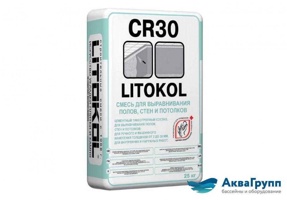 LITOKOL CR30 — тиксотропный состав стандартного схватывания и высыхания, на основе цемента, инертных наполнителей и специальных химических добавок.