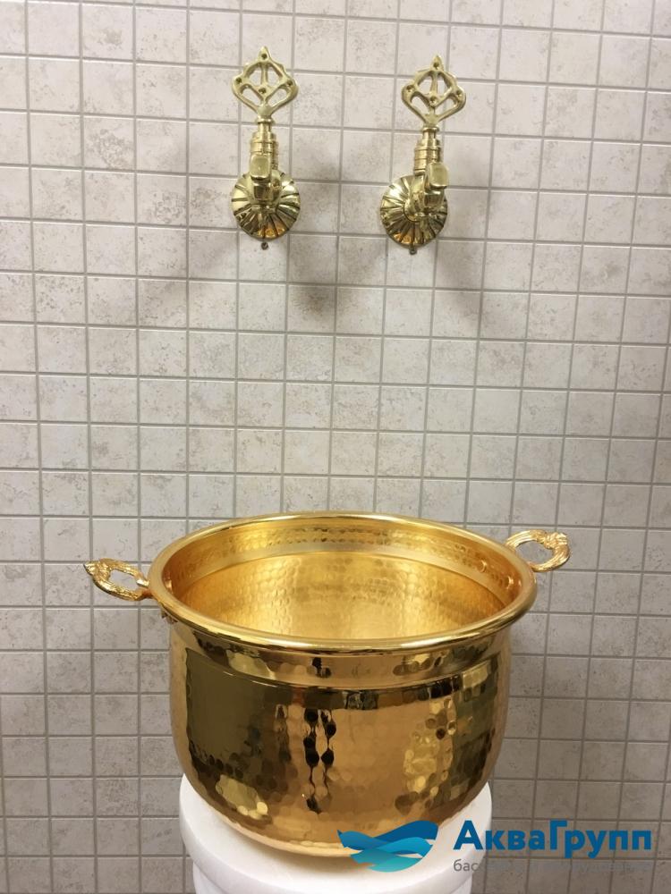 Таз медный "Золото" Диаметр 31 см. высота 21 см., покрыт золотистым покрытием.
