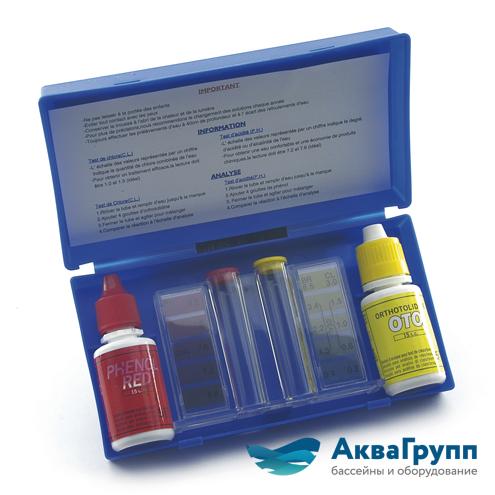 Тестер для определения концентрации хлора, брома и уровня рН с жидкими реагентами. Хлор, бром: 0.1 - 6.0 мг/л pH: 6.8 - 8.2