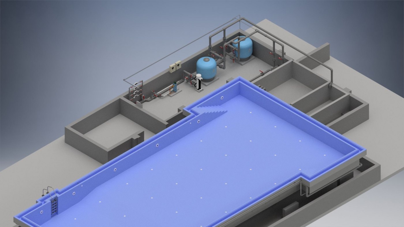 На этом этапе осуществляется разработка проектной документации, необходимой для реализации будущего бассейна. В зависимости от конкретной ситуации разрабатываются определенные разделы, например: технологические решения здания бассейна, конструкции железобетонной чаши бассейна, технология водоподготовки, проект по электрике, отоплению и вентиляции.