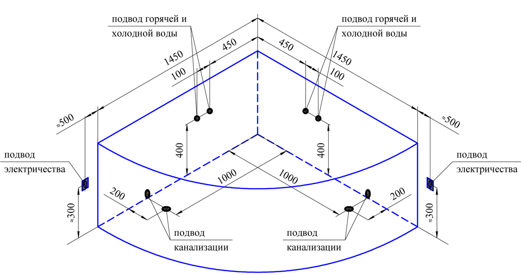 Квадратные и модели нестандартной формы допускается установить под стенками.